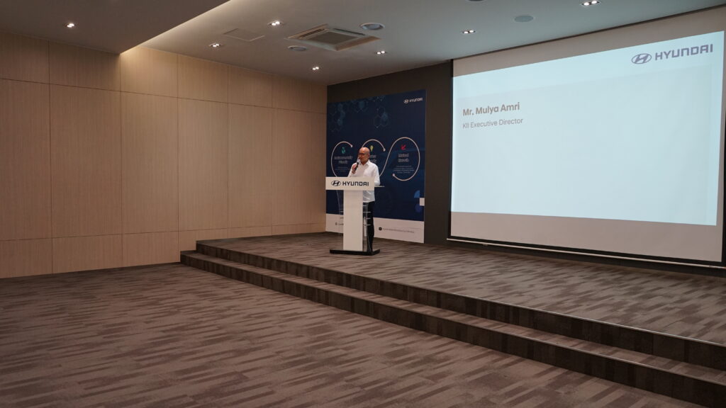 Acara dibuka dengan sambutan oleh Bapak Mulya Amri, Ph.D., Direktur Eksekutif Kadin Indonesia Institute, yang menekankan pentingnya sinergi industri, pemerintah, dan lembaga pengembangan SDM dalam membangun daya saing manufaktur nasional. Dalam sambutan berikutnya, Bapak Wiranata dari jajaran pimpinan HMMI menegaskan bahwa Hyundai berkomitmen memperkuat ekosistem industri otomotif Indonesia melalui transfer teknologi, kemitraan dengan pemasok nasional, dan penciptaan lapangan kerja berkualitas.