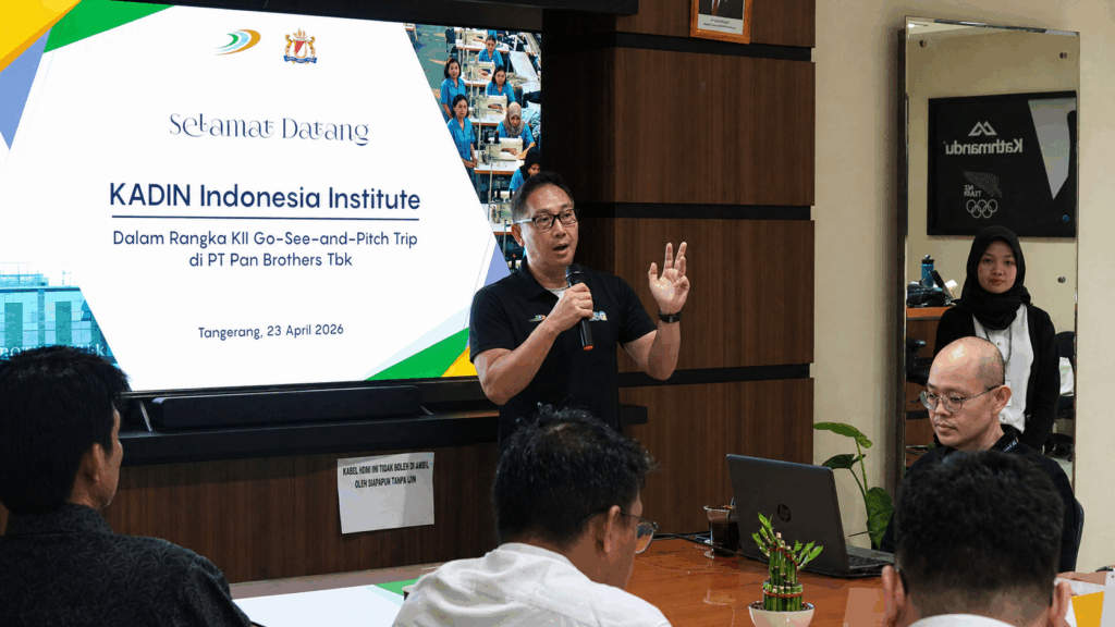 Tangerang, 23 April 2026 — KADIN Indonesia Institute (KII) menyelenggarakan kegiatan Go-See and Pitch Trip ke PT Pan Brothers Tbk sebagai bagian dari upaya mendorong pembelajaran berbasis pengalaman serta memperkuat kolaborasi antara pelaku industri dan inovator. Kegiatan ini menggabungkan kunjungan langsung ke fasilitas produksi dengan sesi pitching bisnis terkurasi yang mempertemukan kebutuhan industri dengan solusi inovatif.